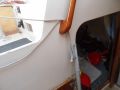 Habe den 2.Anker einen Plattenanker, an einem dünneren Seil befestigt und nach dem schwojen des Schiffs an der Backboardseite zu Wasser gelassen. Das Seil über die Seitenklampe (dass es gut rutscht) und dann in die Kabine geführt und dan den Handgriffen der Treppe verschlauft. Dann den Enterhaken so angebracht dass er beim Anziehen des Seils Lärm macht. Siehe Foto - das hat prächtigst funktioniert.