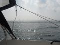 Um 01:00, habe 3 Std geschlafen, dann der erste Alarm - die Winsch dreht sich. Ich erwache aber kurz vor dem Alarm, denn es pfeift der Wind. Uff, Windmesser an und siehe da 15 kt aus Nord. Nun schwojt es ganz heftig. Dann ist der Wind wieder fast weg und es geht zurück. Das Spiel wiederholt sich nun bis zum Morgengrauen, immer mit dem leichten Strom aus Osten, dann mit dem Wind aus Norden. Dies erzeugt auch etwas Wellen. Das Schwojen geht mitunter auf die 90° - hoffe dass mein CQR Anker hält (man sagt die seine nicht so gut wenns heftig schwojt). Aber ich habe ja eine lange Ankerkette das wirds ihn schon nicht so schnell ausbrechen, denn er hält wirklich gut.
