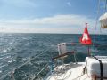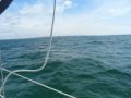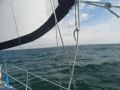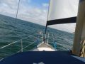 Der Kurs geht ziemlich genau nach Osten. Ein anderer der kurz nach mir aus dem Hafen raus ist hat beide Segel gesetzt und fährt mit Motoer. Klar ist er schneller. Ich sehe aber dass er auch Probleme mit dem Schaukeln hat und er verkleinert das Grossegel auf minimal. - ok dann liege ich nicht falsch.