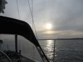 Der Wetterbericht ist nicht so gut, vor allem der Wind könnte zu schaffen geben, Ausläufer test Sturmtiefs Berta könnten hier "wüten". Ich bin also um 5:30 auf, Frühstück und dann 06:40 abgelegt. Zuerst kein Wind. Nach ca 1 Std kommt Wind auf , ich kann beide Segel setzen und richtig segeln auf nordöstlichem Kursen bis ca 13:30. Das war die Längste Strecke und Dauer mit der ich auf dieser Reise allein mit Segel fahren konnte.