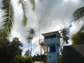 Am Nachmittag kommt der Palmenkletterer. Ich erkläre ihm was ich will: bei der einen Palme hängt die Rolle noch oben, da muss er nur das Seil einfädeln. Bei der 2. (die letztmals verwendete hatte den Palmkäfer und wurde gefällt), muss er den Tampen mit der Rolle um die Palme befestigen. Ich will ihm die Knoten erklären, er nimmt mir das Seil aus der Hand und macht in Sekundenschnelle einen Palsteak - uff - er ist Fischer alles klar.