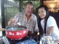 Heute, heute nun findet das Fondue statt. Rene, Klaus, Ammy und ich essen 2 Beutel MoieMotie und 1 Beutel Classic.