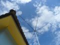 An der linken Ecke der Treppe oben wird dann ein Mast gestellt (5m?), und darauf kommt der vorbereitete HEX-Beam 20-17-15-12-10-6m. Er sollte die Dachspitze ca 2m überragen.