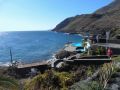 Nachdem des Badens genug war gings dann weiter durch den kurzen Tunnel nach Timijiraque wo es einen der wenigen schwarzen Sandstrände hat. Doch unser Ziel war nicht der Strand sondern das kleine Restaurant. Allerlei kleine Speisen, unter anderm ein kleiner sehr schön aufgemachter Pulpo wurde serviert. Von diesem nur etwas gekostet, denn ich hatte einen Fisch bestellt und der dauerte etwas länger. Der schmeckte auch sehr gut, denn frischer gehts nicht mehr...