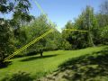 Dann mit der Steinschleuder eine M10 Mutter mit der befestigten Anglerschnur über einen Baum gebracht.