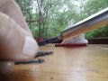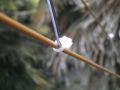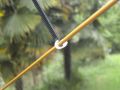 Nachher das dünne Seil (eine geflochtene Maurerschnur Reissfestigkeit >100 kg) aufgezogen. Dasselbe auf der anderen Seite.