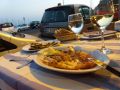 Fischteller und Gemüse, 1 Ltr Wasser, 1 Glas Weisswein €33 - ja ich bin im Hafen....kann ja dann gf morgen "zu Hause" essen.