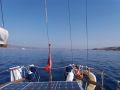 Ich konnte einige Zeit sogar die Genua rausziehen und kam sogar mal auf 5.4kt. Wie ich jedoch alleine mit ihr fahren will sehe ich der Wind ist zu unbeständig und sie kommt immer wieder back.