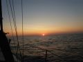 Um 06:30 bin ich auf, rechtzeitig um die Morgenröte und anschliessend den Sonnenaufgang aif dem offenen Meer zu geniessen.