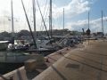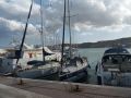 Nach der Hafeneinfahrt sind die Wellen weg, nur der Wind bleibt bei 20kt mit denen ich denn auch anlege. Das geht gut, ich konnte mit dem Bug im Wind einfahren und festmachen.