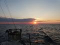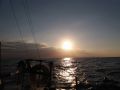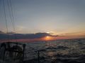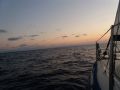 Irgendwann kurz nach dem schönen Sonnenuntergang, es war ungefähr in der Mitte der Ägäis (es hat einen Felsen mit einem Leuchtfeuer drauf - Kaloyeroi), kommt mir tatsächlich ein Segler entgegen.