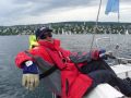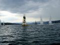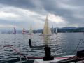 Einige mit Frühstart ab. Dann zuerst Super Wind bis zur 1.Boje. Dann Spi-Kurs mit typischem Zürichsee Wind (dh.fast keiner oder ein Hauch) dann endlich 2.Boje und dann gehts wieder.