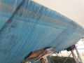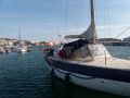Ich verbringe die 3 Tage bis das Antifouling hier ist mit vorbereiten und mit den Schadstellen reparieren. Am Kiel hat es (normal) immer wieder mal einen Rostfleck. Diese schleife ich bis blank, trage Ovitrol rauf, dann spachteln mit zweikomponenten Kunstharz und dann nochmals mit Ovitrol.