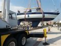 Das Einwassern problemlos, um 11 Uhr bin ich drin. Der Kran kostete mich 170€, ist sehr ok, sie haben das gut gemacht mit 2 mal Gelegenheit (nach abheben und vor dem zu Wasser lassen) gegeben die fehlenden Stellen zu streichen.