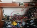 Dann geht es langsam an die Sanierung des Elektro Tableaus. Santos (im Shop) ruft einen Schreiner an, der andertags kommt. Ich baue das alte Tableau aus, gebe dies als Muster mit (und die Wiederverwendung der oberen Winkelleiste). Er sagt dass er das Furnier in Athen bestellen muss - er sage 1 Woche dann sei alles fertig und er käme dann und mache die Ausschnitte grad vor Ort.