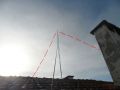 Am Kamin eine Befestigung angebracht - in der Nähe der Luke - so kann ich die Antenne von der Luke aus "bedienen". Die beiden Dipolhälften von je 13.75m Länge, führen vom Top auf ca. 13m, schräg nach unten (1x östlich / 1 x süd-westlich) in flachem Winkel (20-30°) niederführend auf 6m zu den Endmasten.. Vom Top Mast noch eine Abspannung gegen Norden. Macht dann ca. 120° Winkel gegen Süden (240° gegen Norden). Das müsst einigermassen eine rundcharakteristische Abstrahlung geben.
