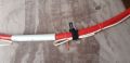 Die Doppellitzen Enden (ich habe ca 10 cm als Reserve zur Anpassung umgebogen und mit einem Klettband befestigt, so dass zwischen den umgebogenen Enden eine Lücke von 14 cm verbleibt.