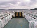 Anstelle von Fahrzeugen hat es heute Fracht. Es mögen um die 50 Säcke à geschätzt 1m3 sein, mit einem relativen festen Inhalt. Ich frage ein Crewmitglied was da drin ist.